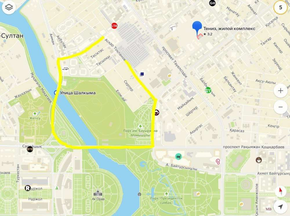 - улица Сарайшык (от Момышулы по мосту М-1);