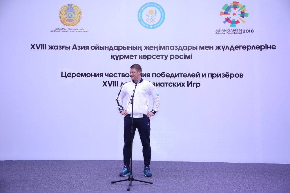 От имени спортсменов выступил чемпион Азиатских игр по фехтованию Дмитрий Алексанин, который в финале обыграл Олимпийского чемпиона из Южной Кореи.