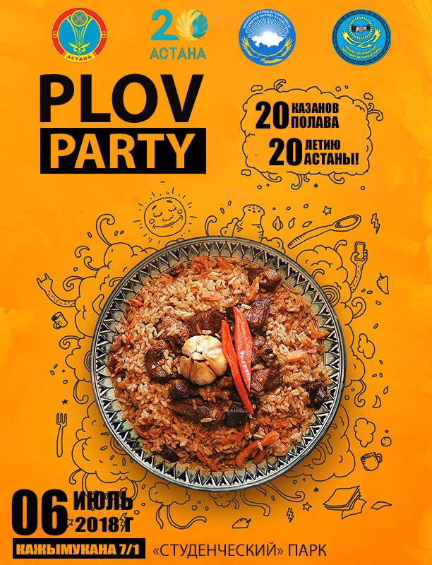 Ассоциация общественных объединений узбеков РК "Дустлик" совместно с Альянсом студентов Казахстана под эгидой Ассамблеи народа Казахстана и при поддержке акимата города Астана проводит благотворительную акцию "Плов Pаrty: 20 казанов плова – к 20-летию Астаны!". В рамках мероприятия на отведённой площадке планируется приготовление 20 казанов плова, рассчитанного более чем на 4 тысячи человек.