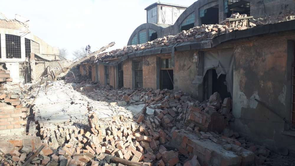 Также повреждены крыша, стена, оконные проемы рядом стоящего действующего цеха автомастерской, оборудование и три легковых автомобиля.