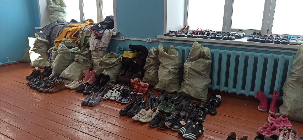 В одном из эвакопунктов областного центра, в общежитии колледжа, общественный штаб развернули в помещении, где население также может получить гумпомощь. Здесь продукты питания, одежда и обувь на любой возраст.