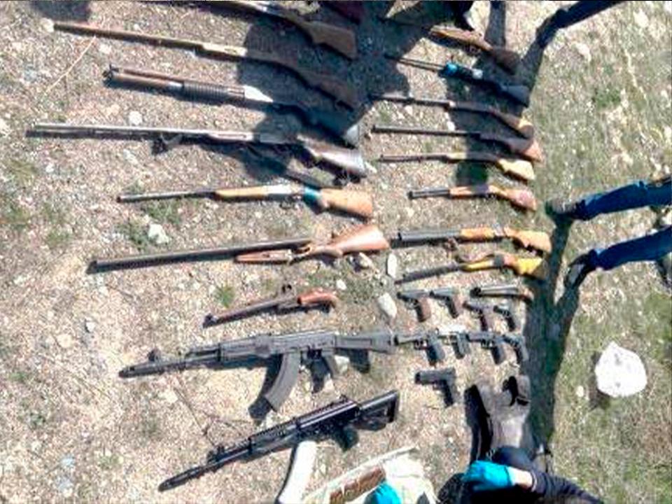 В Жамбылской области обнаружены схроны с автоматом "Калашникова", револьвером, карабином "Сайга" и 328 боеприпасами. В Кызылординской области выявлены тайники с оружием, из которых изъяты автомат "Калашникова", пистолет "Макарова", пистолет-пулемет "Борз", карабин "Сайга", граната "Ф-1″ и 59 боеприпасов.