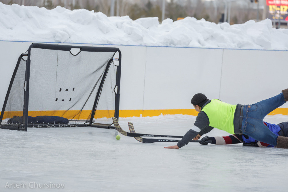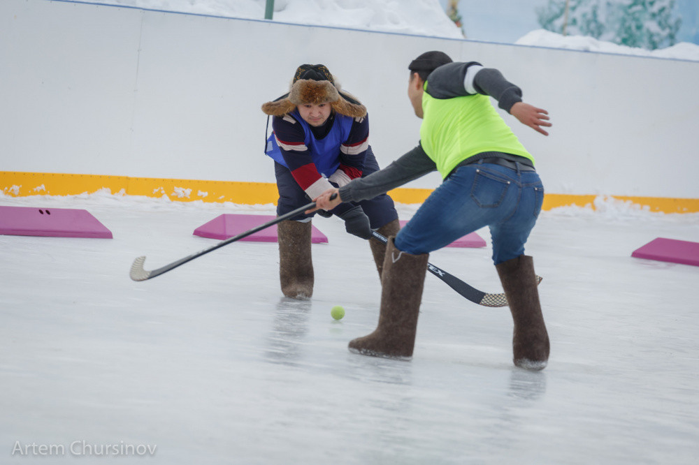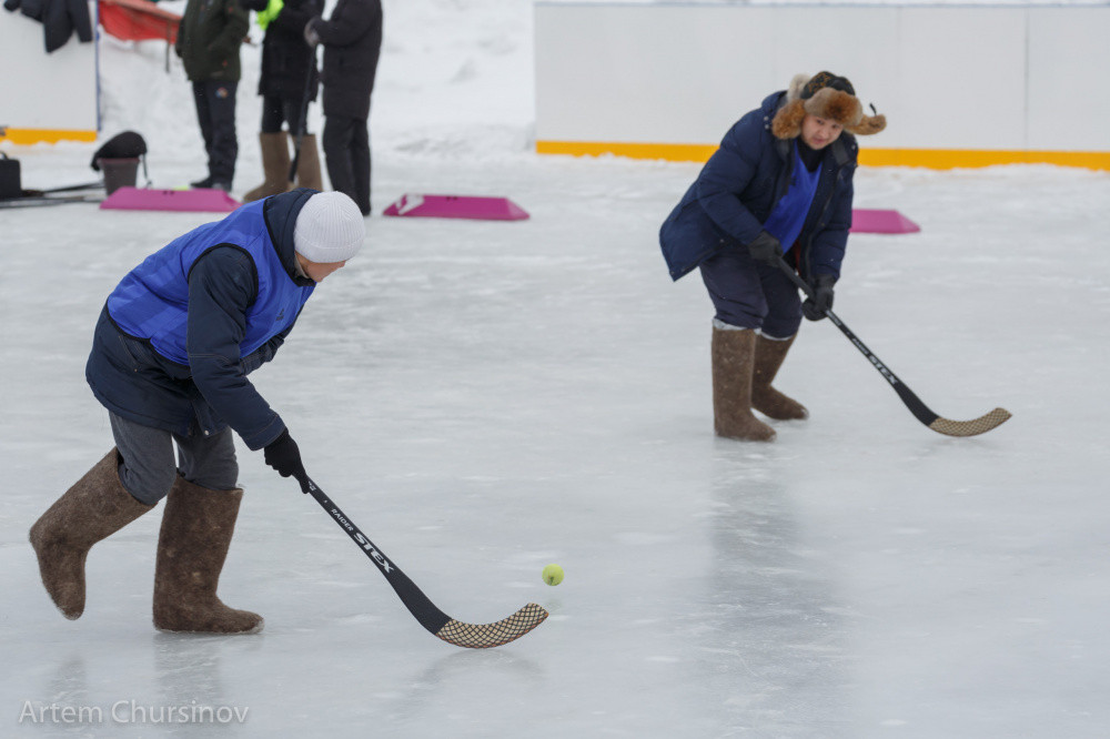 Это не профессиональный хоккей: поле – меньше, форма – не обязательна. Клюшка, теннисный мяч вместо шайбы и, самое главное – валенки. Передвигаться в них по льду, по словам участников соревнований, непросто, но зато все равны.