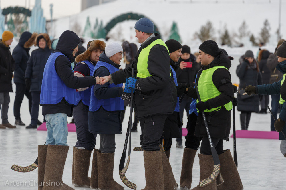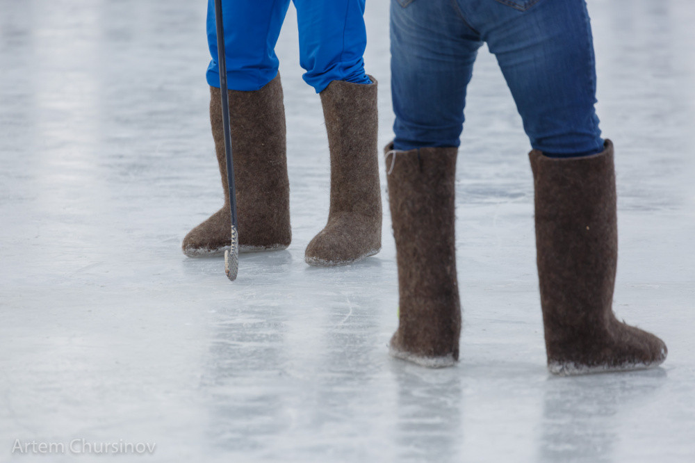 "В связи с тем, что немногие умеют кататься на коньках, мы решили упростить участие. Это минимально травмоопасно и все могут принять участие. К тому же в валенках теплее и удобнее", - отметил Кожахметов.
