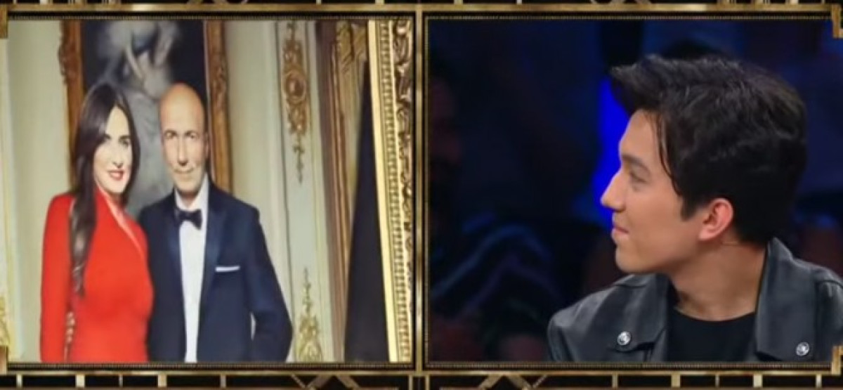 "Мы с семьей думали, что бы подарить. Мы видим вашу прекрасную семью, ваши отношения с Ольгой. В следующем году у вас будет 25-летие. И мы хотим, чтобы все эти гости собрались на ваше 50-летие, и на 75-летие совместной семейной жизни", - поясняет отец Димаша Канат Айтбаев, вручая масштабный портрет Крутому.