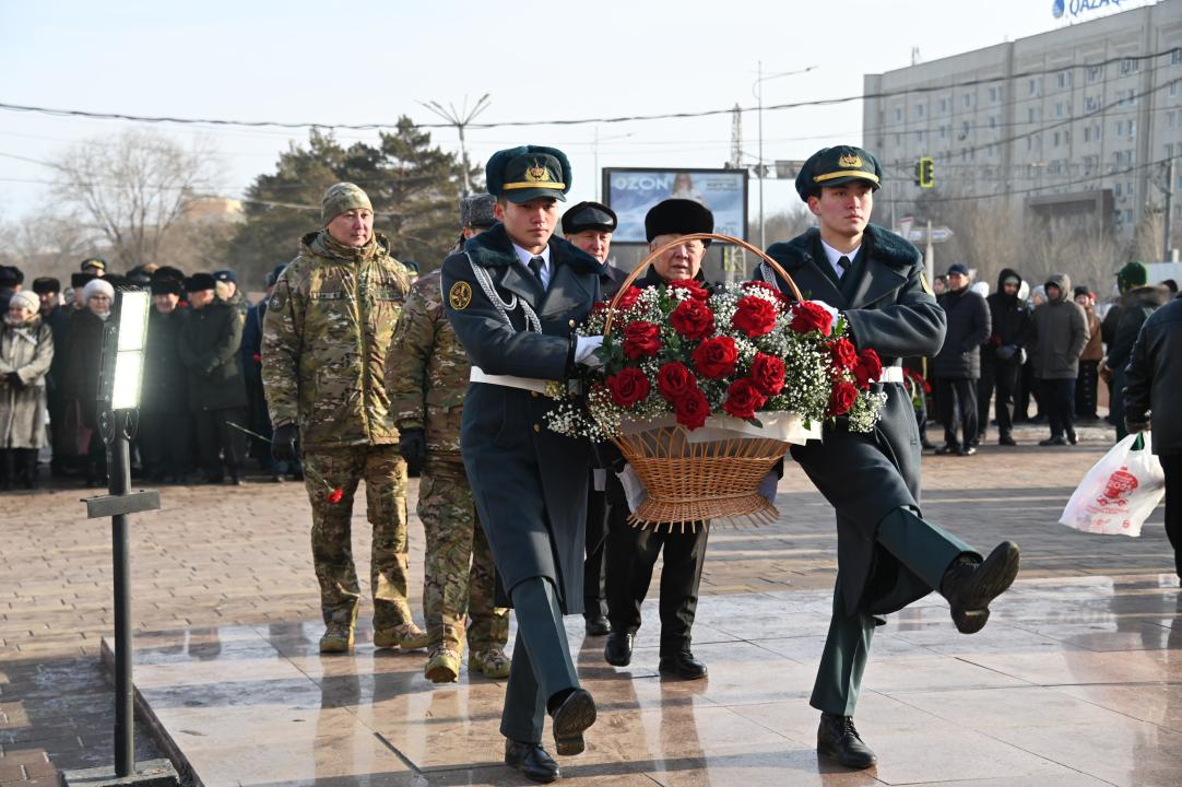 "14 января, в день ее гибели, в г. Актобе состоялось возложение цветов к мемориальному комплексу Героя Советского Союза Алии Молдагуловой. Память Алии Молдагуловой почтили аким области Асхат Шахаров, представители департамента по делам обороны, руководство, курсанты Военного института Сил воздушной обороны, военнослужащие Актюбинского гарнизона, ветераны Вооруженных сил, воспитанники движения "Жас сарбаз" и родственники", - говорится в сообщении.