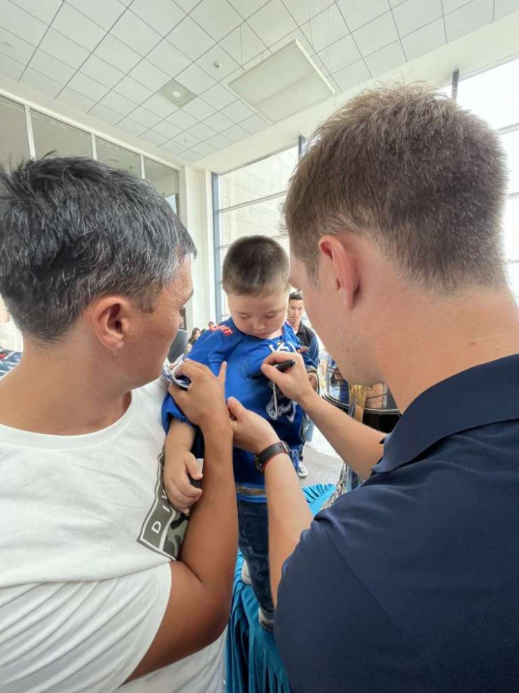 Игрок сборной Казахстана по хоккею Даррен Диц, которому удалось в прошлом сезоне вместе с ЦСКА выиграть Кубок Гагарина, приехал в Нур-Султан. Диц вместе с трофеем встретился в "Барыс-Арене" с любителями хоккея, чтобы пообщаться с ними, сделать памятные фото, а также раздать автографы, сообщает корреспондент BaigeNews.kz.