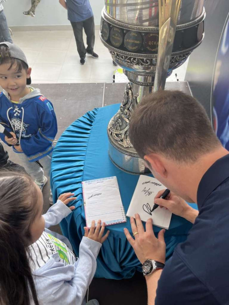 Желающих встретиться со звездой сборной Казахстана собралось немало. Об этом свидетельствует длинная очередь, которая выстроилась на втором этаже "Барыс-Арены", где состоялась автограф-сессия Даррена Дица.