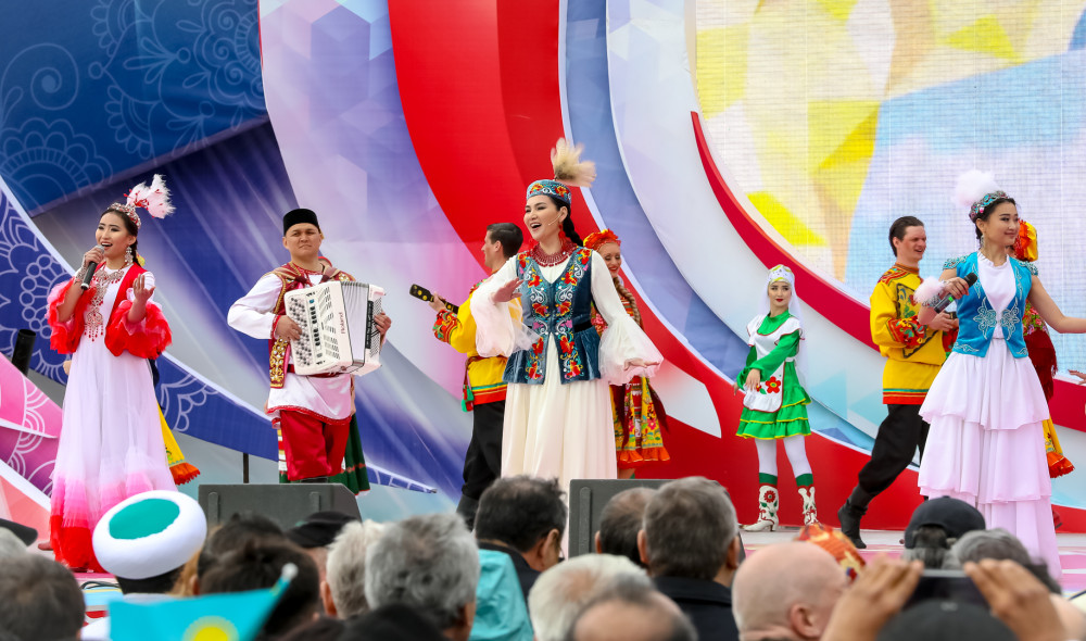 Праздничный концерт, посвящённый Дню единства народа Казахстана собрал на площади у монумента "Қазақ Елі” большое количество жителей, гостей столицы и общественных деятелей. На главной сцене с концертными номерами, танцами и песнями выступили артисты – представили различных этно-культурных конфессий, символизирующие единство народов, проживающих в Казахстане.