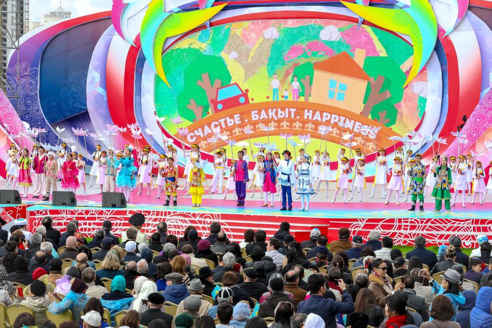 В рамках концерта Нурсултан Назарбаев выступил с поздравительной речью, в которой отметил, что современный Казахстан процветает благодаря единству народа, родившемуся во времена далёкой истории государства.
