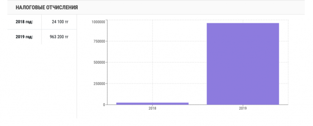 В 2019 году предприятие выплатило 963 тысяч тенге налоговых отчислений.