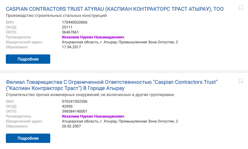 Вторая компания "Каспиан Констракторс Траст" числится в качестве действующей с 2007 года. Однако за последние шесть лет налоговые отчисления проводились только два раза.