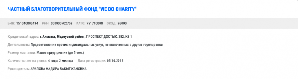 Если говорить о детях самого акима Алматы, то 27-летняя дочь Бахытжана Абдировича — Арапова Надира Бакытжановна руководит частным благотворительным фондом "WE DO CHARITY" в Алматы.