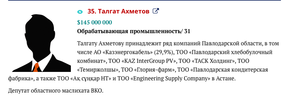Остальные три предприятия числятся на Бакауове Мурате Данияровиче, судя по всему, племяннике акима Павлодарской области.