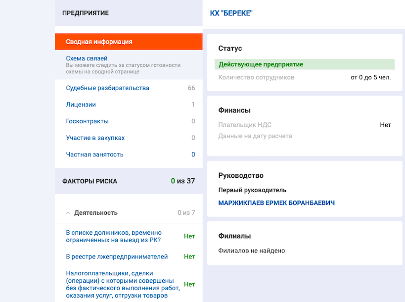 Помимо шефствования над пристоличной областью, Ермек Маржикбаев числится директором предприятия КХ "Береке", которое действует с 2017 года. В списке должников по налогам предприятие не значится.
