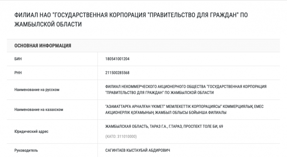 Кроме этого Кыстаубай Абдирович управляет госкорпорацией "Правительство для граждан" Жамбылской области.