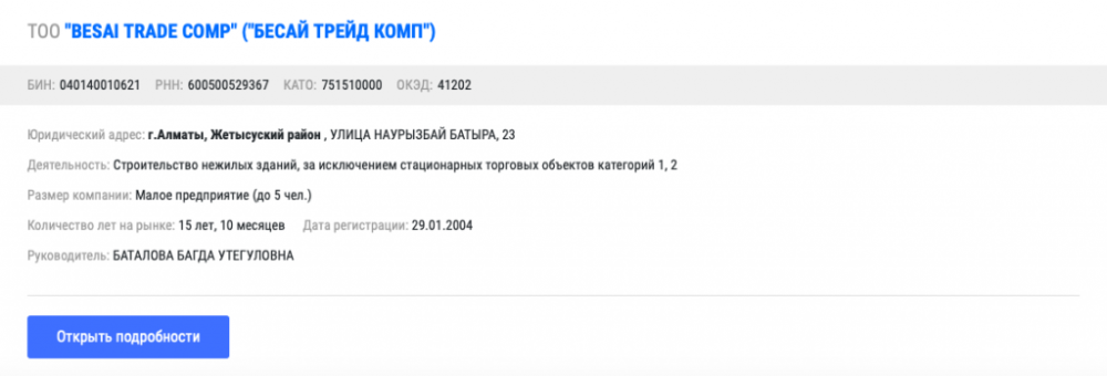 Младший сын главы Алматинской области Исламбек Баталов также числится руководителем ТОО, но уже в Талдыкоргане.