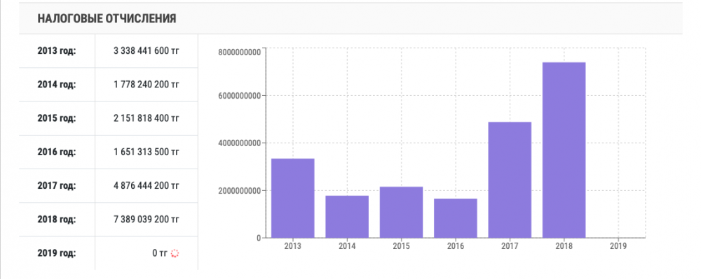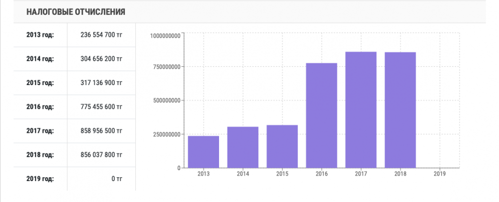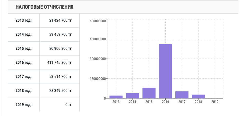 Вот уже 20 лет Мукаш Зулкарнаевич не расстается с компанией "Казфосфат". В начале нулевых он руководил филиалом и дослужился до генерального директора. Чтобы хоть мало-мальски иметь представление о доходах компании - передовика фосфорной промышленности Казахстана, посмотрим на налоговые отчисления.