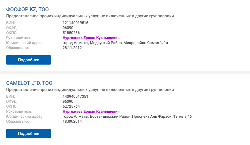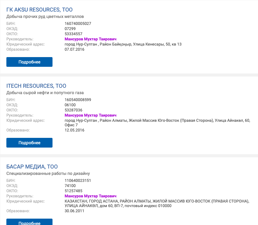 Кроме этого, у Рашита Сарсенова есть офшоры на Мальте через компании, зарегистрированные в Алматы, где он занимает по четыре должности в каждой.