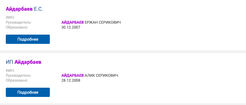Практически на всех близких родственниках Алика Сериковича, как и на нем самом, зарегистрировано ИП.
