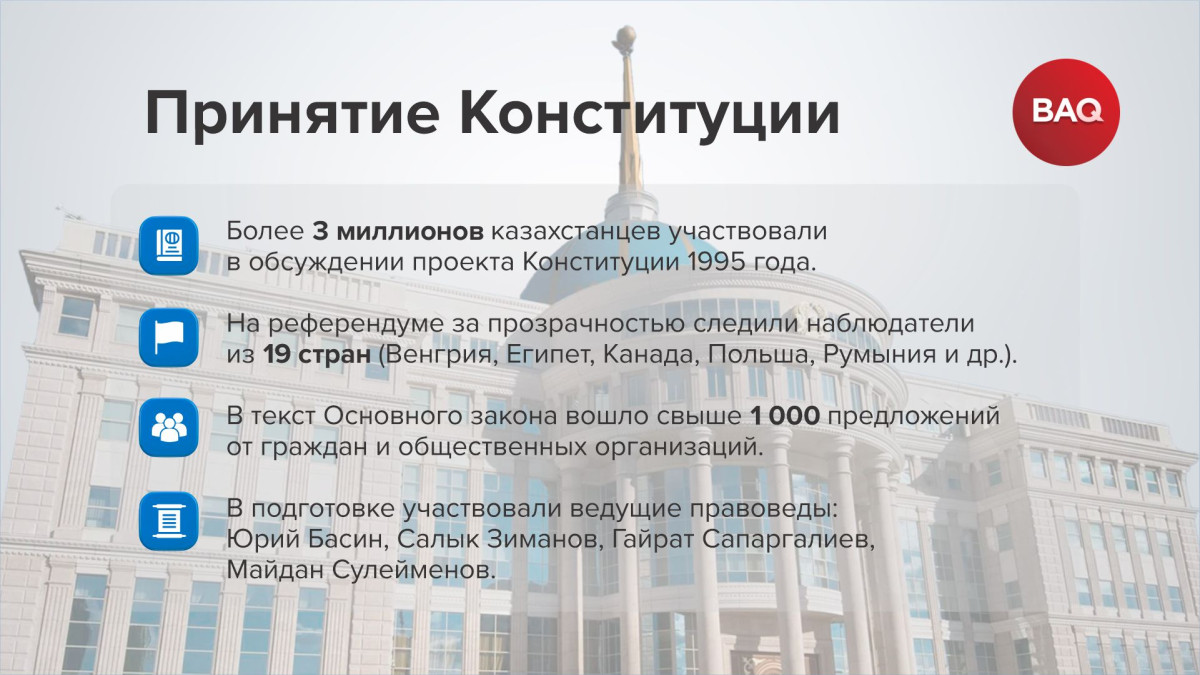 В честь праздника редакция BAQ.KZ собрала 10 наиболее значимых статей Конституции, которые остаются актуальными для современного Казахстана.
