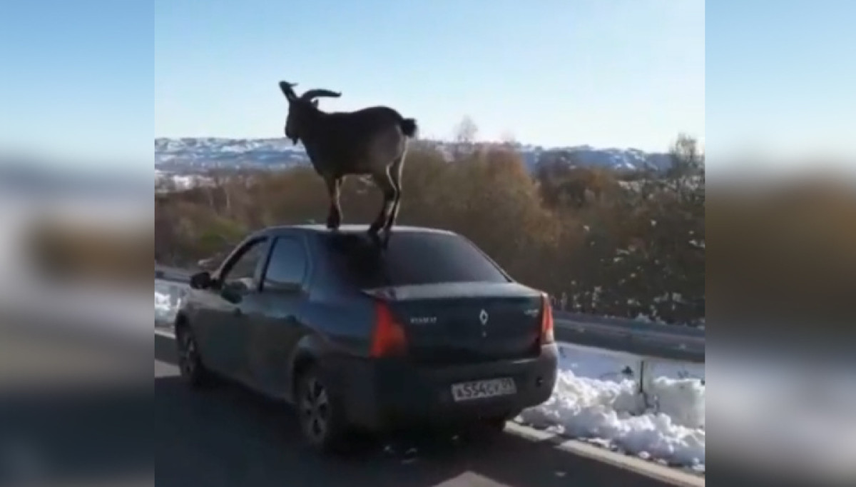 В сети распространяется вирусное видео, на котором козел устроил прыжки на автомобиле.