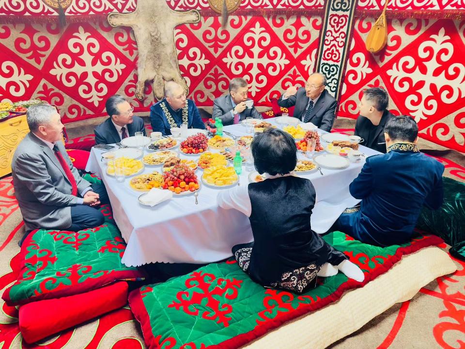 Известный китайский писатель, бывший депутат Народного политического консультативного совета Китая, автор переводов на китайский язык произведений Абая Кунанбаева Акбар Мажит произнёс "бата" и благословил собравшихся гостей.