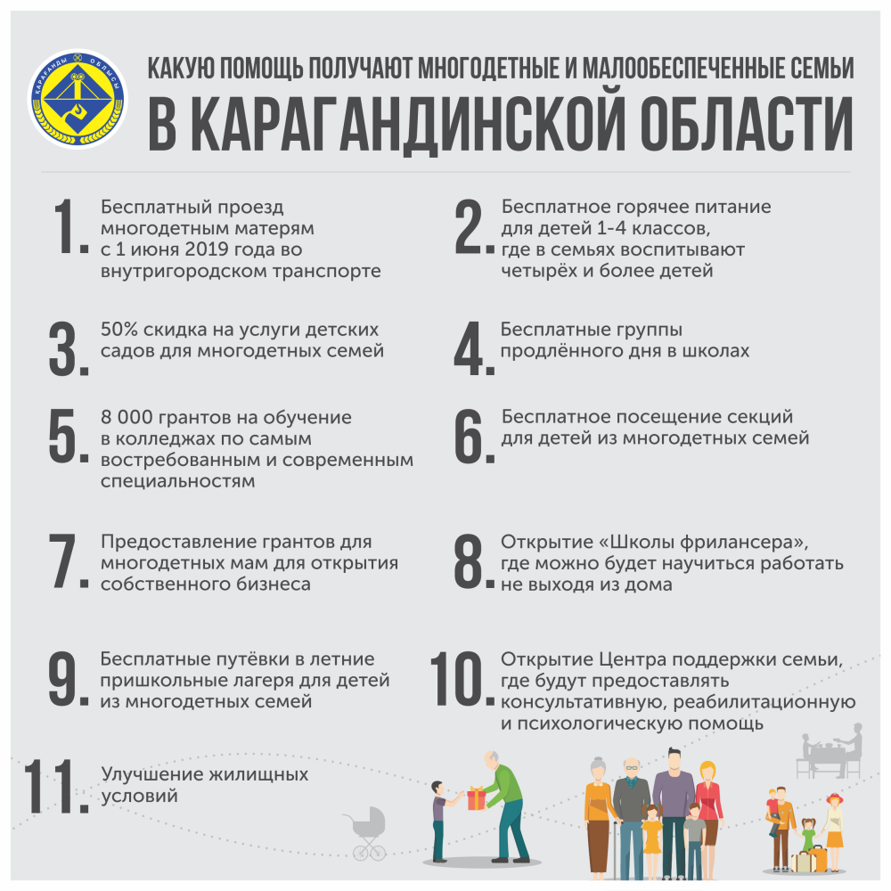 По словам акима, многодетным матерям планируется предоставить 200 грантов на открытие собственного дела. Специально для них будет создан бизнес-инкубатор. В области откроют центр по поддержке семьи, в котором будут консультировать специалисты и психологи.