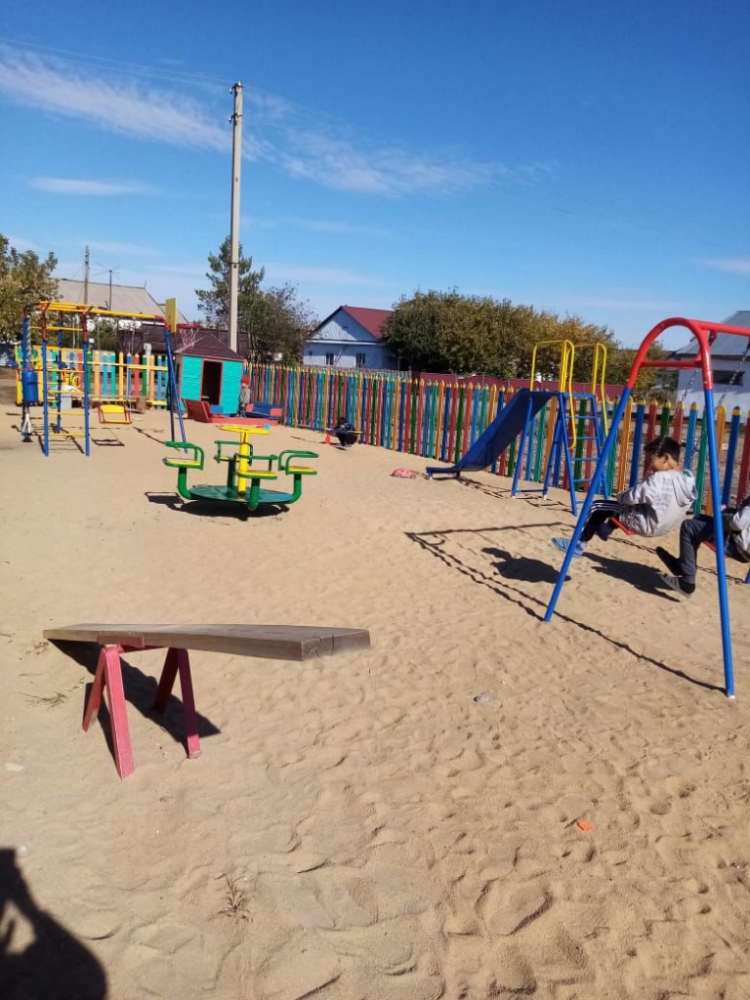 Жительница станции Жалтыр в Астраханском районе Акмолинской области Галина Ковинская рассказывает: о детской площадке с соседями мечтали давно. В этом году ее супругу удалось получить в аренду участок земли рядом с домом.