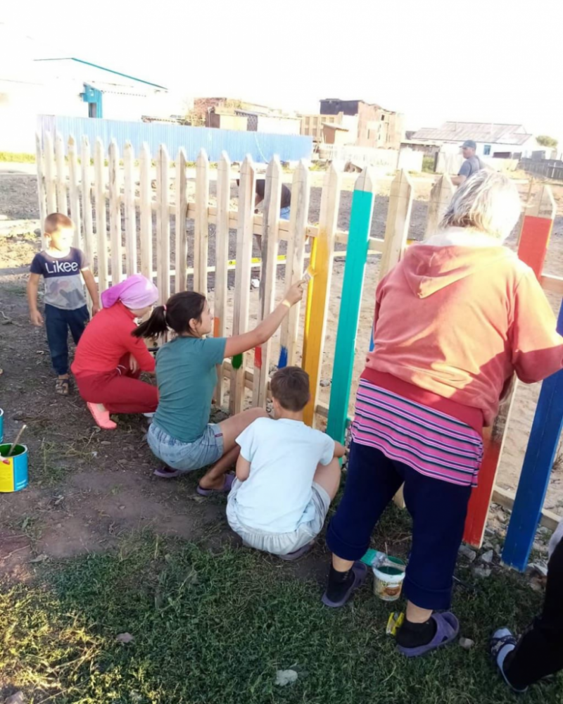 "Я объявила об этом на своей странице в Instagram, сообщила соседям. И мы все вместе закупили необходимое оборудование. Мужчины помогли установить забор, женщины красили скамеечки, заборы. Мой супруг после работы варил металлические конструкции, прибивал штакетники, замерял и устанавливал. В благоустройстве территории принимали участие даже дети. Они помогали расчистить площадку, которую потом мы засыпали щебнем, а сверху – песком", - рассказала Галина Ковинская.