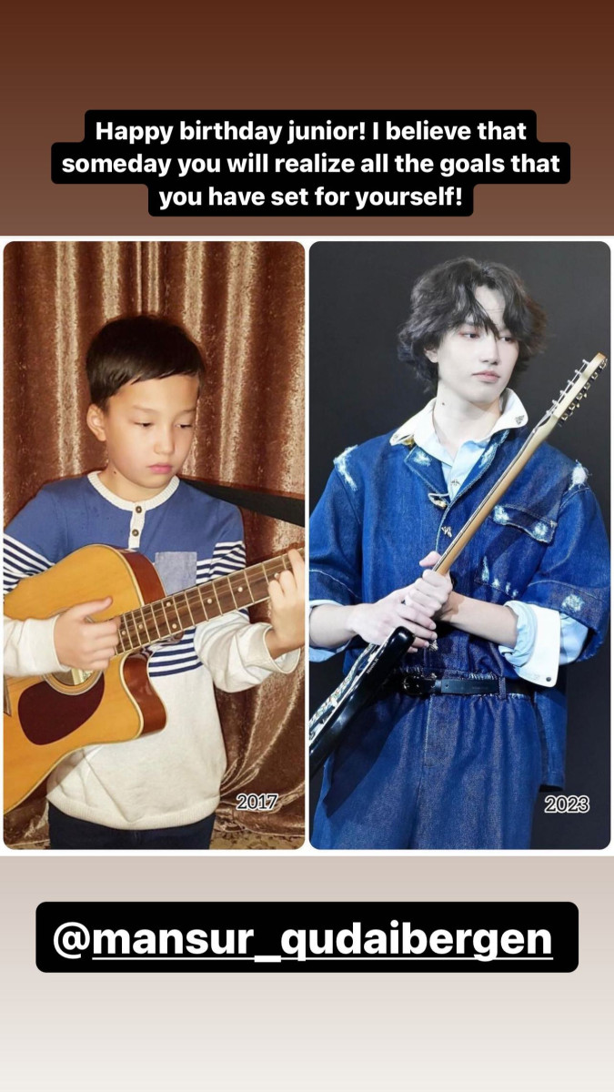 "Сегодня моему младшему брату 17 лет. Брат, хочу пожелать тебе творческих успехов и простого человеческого счастья. Остальное я уже сказал по телефону", - написал Димаш в Instagram.