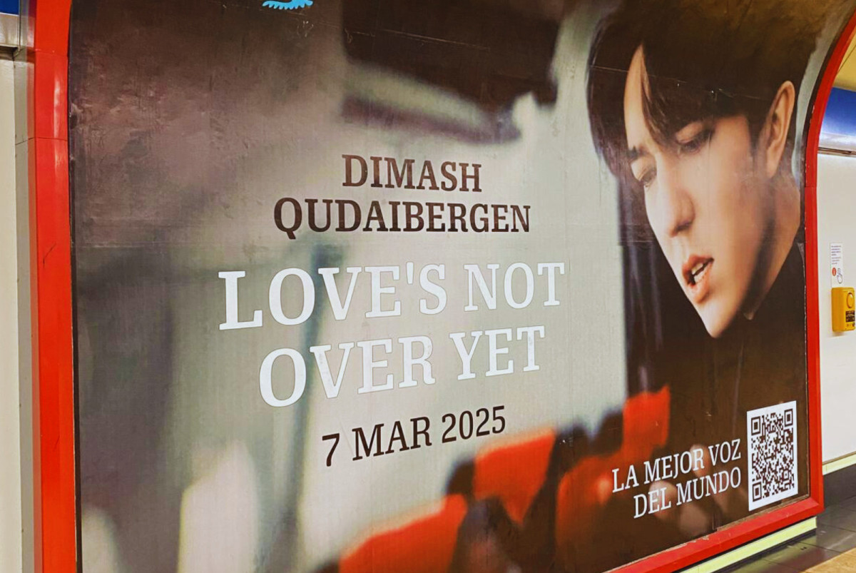 18 марта в Мадриде, на одной из самых оживленных станций метро Legazpi, появился уникальный билборд, посвященный новой песне Димаша Кудайбергена Love’s not over yet. В течение месяца тысячи пассажиров, ежедневно проходящих мимо, смогут познакомиться с творчеством казахстанского артиста.