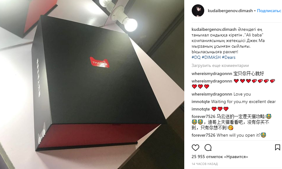 Певец поблагодарил Джека Ма и разместил в профайле фото коробки с подарком, однако, не уточнил, что именно подарил бизнесмен.