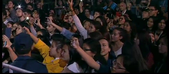 Каждая композиция певца сопровождалась текстом на большом LED-экране, поэтому поклонники подпевали своему кумиру. Они скандировали имя Димаша и одарили артиста цветами.