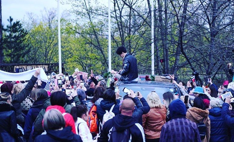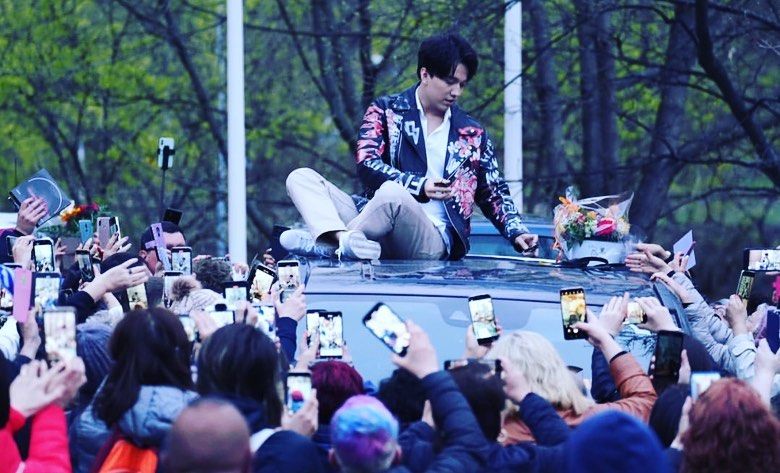 Встречающих было так много, что Димашу пришлось забраться на крышу автомобиля, сидя на которой он раздавал автографы, общался с поклонниками и не уставал благодарить их за тёплый приём.