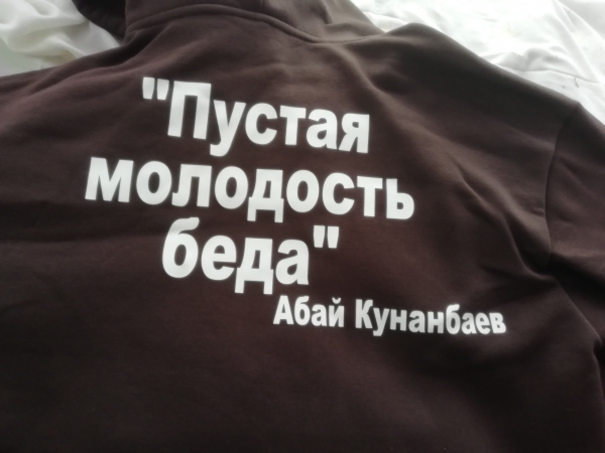 Украшая толстовки цитатами, девушка хочет популяризировать творчество великих казахских поэтов и писателей: чтобы молодежь, увидев глубокую мысль на толстовке, потянулась к знаниям и познакомилась с произведением классика.