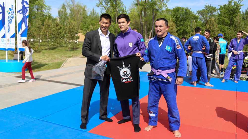 Открытие сезона тренировок под открытым небом посетил и аким столицы Асет Исекешев, в сопровождении Олимпийского чемпиона Данияра Елеусинова.