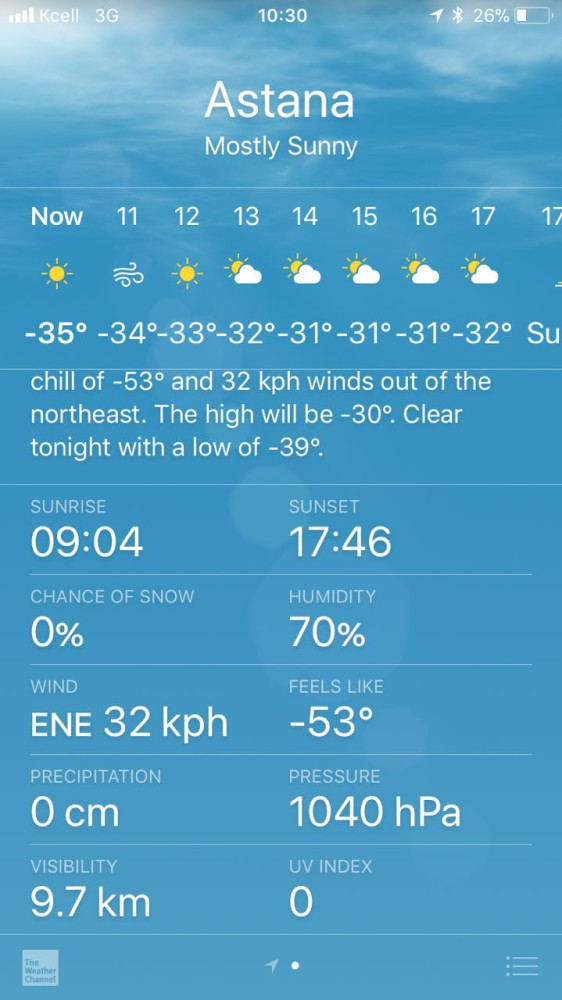 Сегодня мобильные устройства пугают астанчан рекордно лютыми морозами, передает BNews.kz.