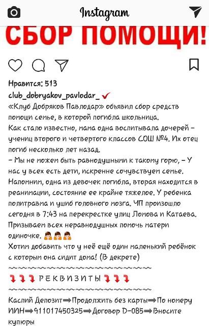 Между тем в соцсетях павлодарцы объявили сбор средств для помощи семье двух девочек.