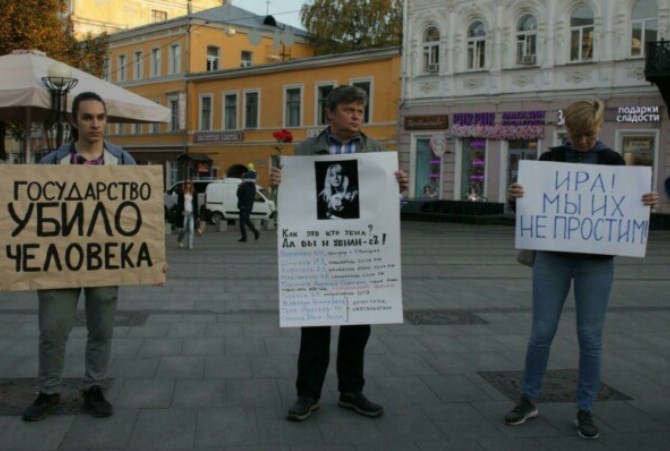 В городах России прошли одиночные пикеты из-за самосожжения журналистки KozaPress Ирины Славиной, передает