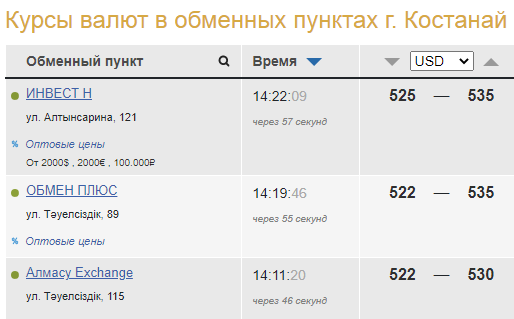 На момент написания новости (13:35 по вр. Астаны) больше всего американский доллар стоил на продажу в обменниках Костаная ― 530 и 535 тенге.