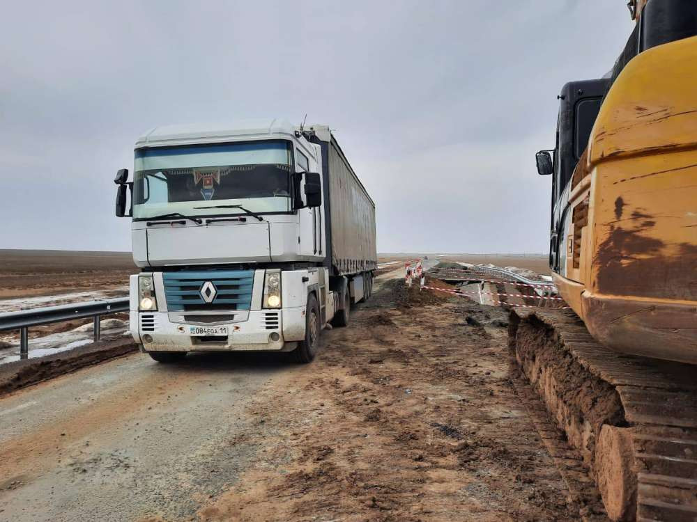 "Из-за интенсивного поступления талых вод на автодороге республиканского значения А-27 "Актобе – Атырау − граница РФ (на Астрахань)" на 283 километре в посёлке Жарлы произошёл размыв водопропускной трубы по основной дороге.