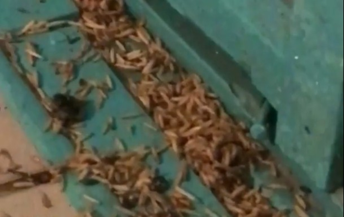 Люди сняли на видео кишащие на полу подъездной площадки кучи опарышей. Говорят, что черви начали падать сегодня, 5 октября, во второй половине дня, и этот неприятный "дождь" не прекращается.