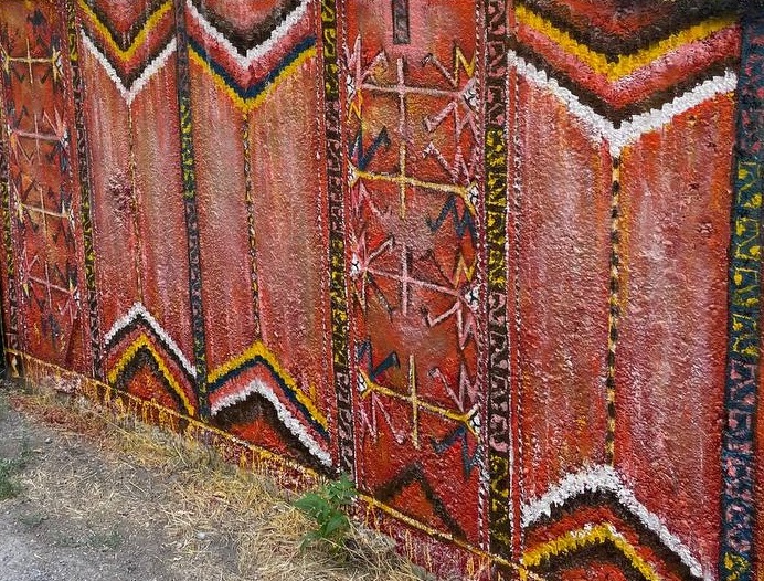 Именно поэтому Дана решила поделиться своей коллекцией с людьми через творчество. Стены, бордюры и даже подъездная дверь дома в котором живет коллекционер украшены ковровыми узорами. От такого буйства цвета и необычных символов просто разбегаются глаза. Дана говорит, этот проект обошелся ей недешево, но это стоит того чтобы любой прохожий, мог заглянуть во двор и прикоснуться к прекрасному.