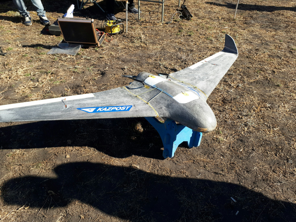 Для пилотного запуска был использован дрон под названием «Летающее крыло», его стоимость - около 4 млн тенге. Он способен преодолевать расстояние до 100 км и перевозить до двух килограммов корреспонденции. Внешне аппарат напоминает мини-самолет. При его отправке из Сарани в Дубовку инженеры прикрепили ко дну аппарата специальный вакуумный пакет с грузом, который дрон должен сбросить в точке назначения.