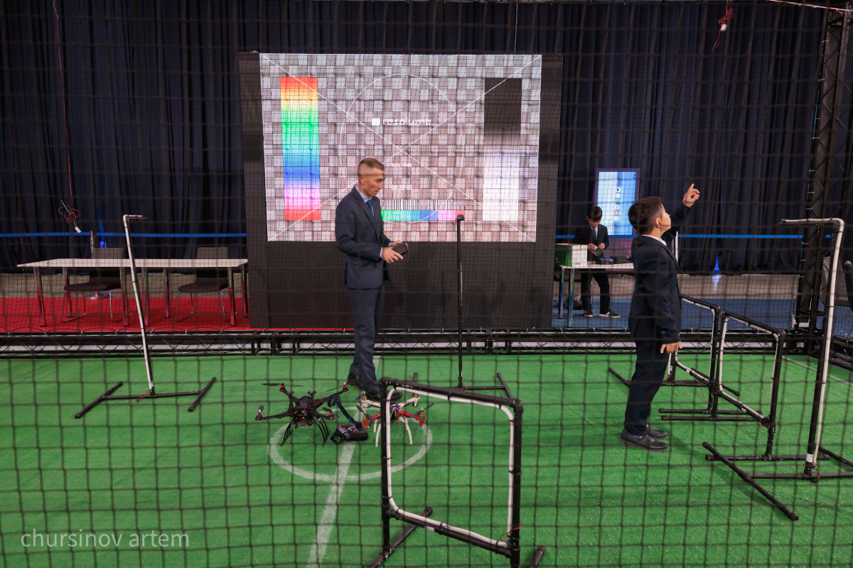 На одной из локаций юные участники управляют дронами, демонстрируя, как искусственный интеллект и робототехника становятся частью образовательных программ.