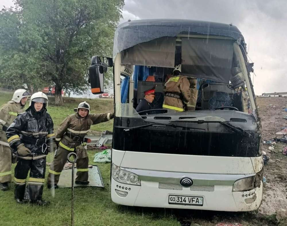 В департаменте по ЧС Жамбылской области рассказали о ходе аварийно-спасательных работ на месте ДТП с участием пассажирского автобуса, передаёт
