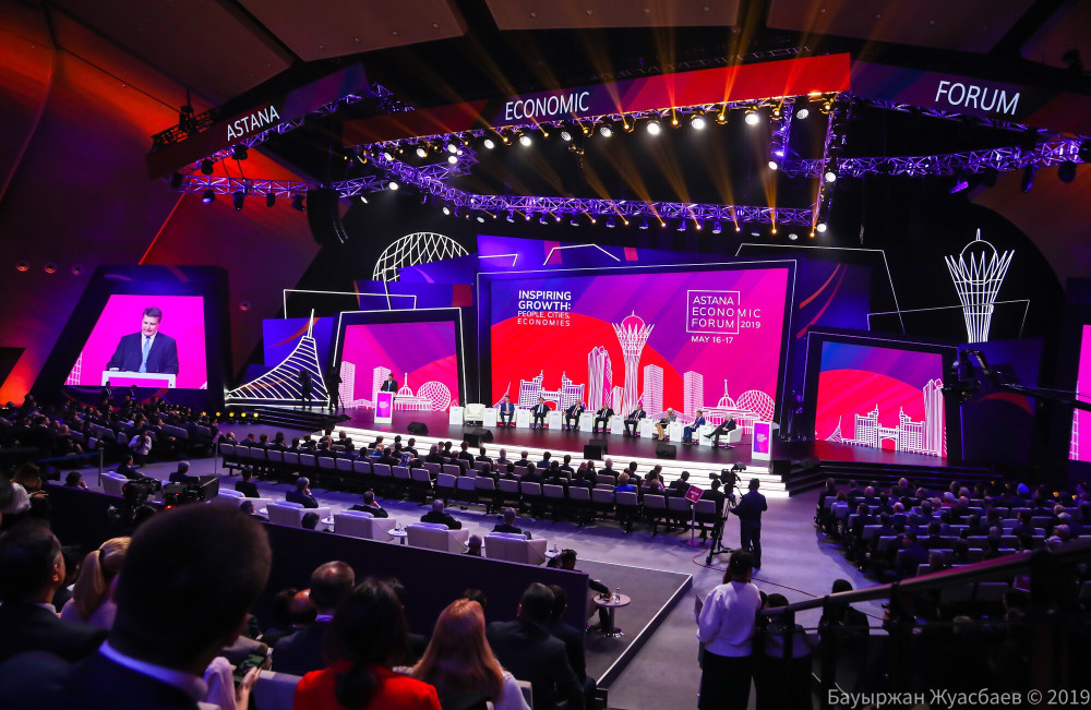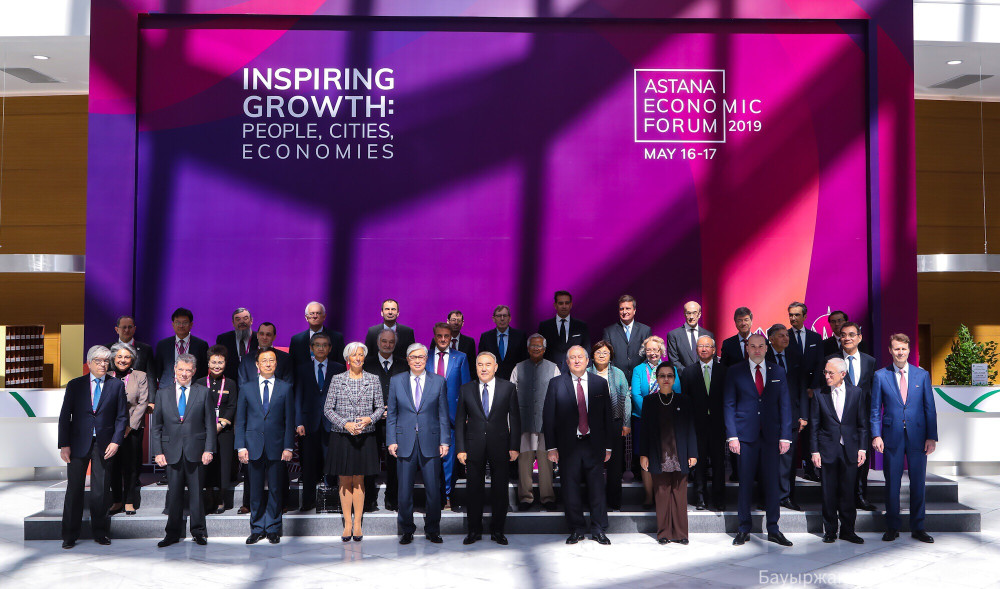"В этом году тема форума определена с учетом мировых трендов. Казахстан является частью этих процессов. Лишь на первый взгляд экономическое развитие в мире кажется стабильным, но за этим скрываются фундаментальные риски и диспропорции. Мировой темп экономического роста снизился с прогнозированных 3,9 % до 3,6, МВФ прогнозирует еще большие сокращения до 3,3 в 2019 году. Поэтому в поисках новых путей развития страны вынуждены усиливать борьбы за действующие рынки, зачастую используя не рыночные методы конкуренции. Мы с вами видим эскалацию торговой напряженности между США и Китаем, Европы, макроэкономический стресс развивающихся экономик, рост политического популизма, санкционные противостояния. Если к этому еще прибавить ломку международных соглашений в области ядерной безопасности и обычных вооружений, становится ясным, что это тревожно и никому не принесет добра", - сказал Нурсултан Назарбаев.