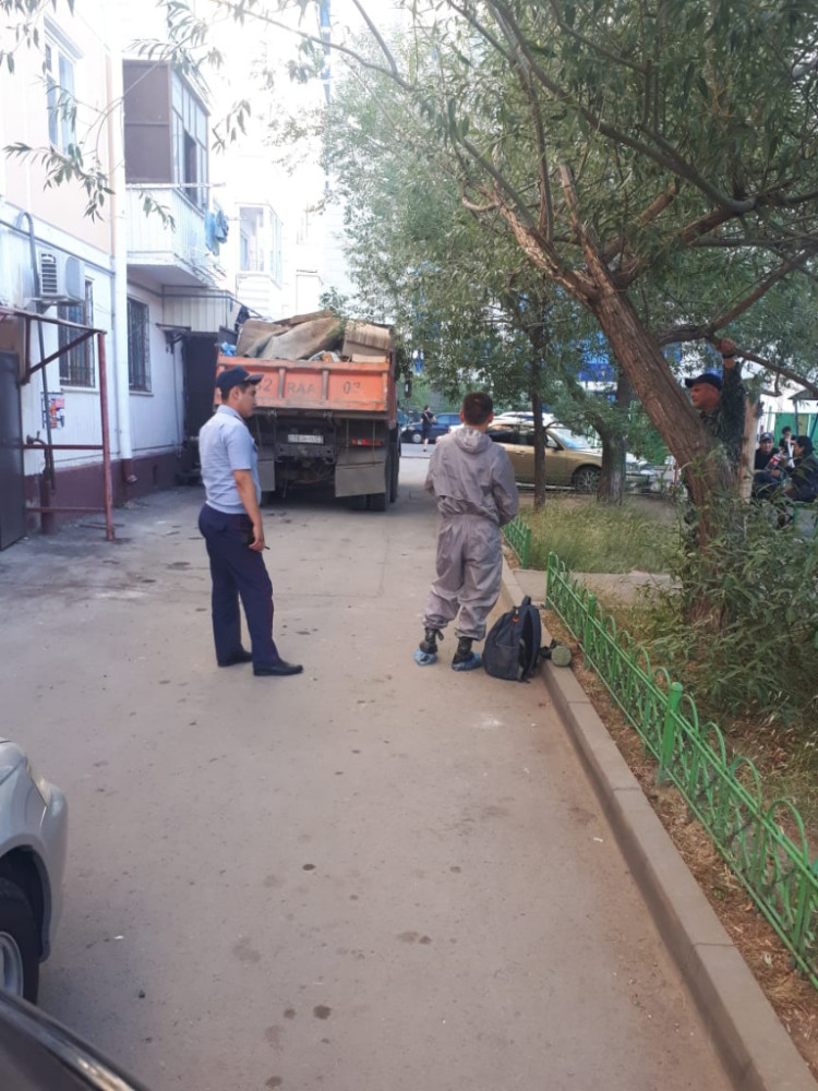 Участковым инспектором полиции района Сарыарка были приняты меры. В результате, из квартиры было вывезено 2 самосвала "Камаз" бытового мусора.