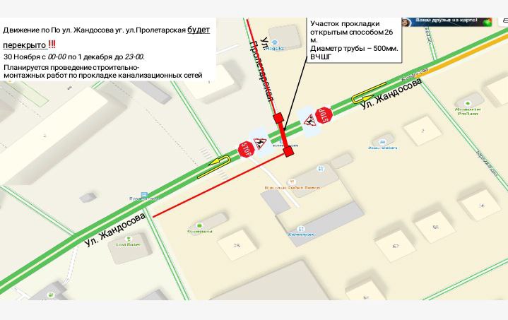 В акимате Алматы сообщили, что в ночь с 29 на 30 ноября, с 00:00 до 23:00 1 декабря, по ул. Жандосова на пересечении с ул. Пролетарской частично будет ограничено движение авотранспорта. Это связано с прокладкой канализационных сетей, передаёт BaigeNews.kz со ссылкой на сообщение городских властей.